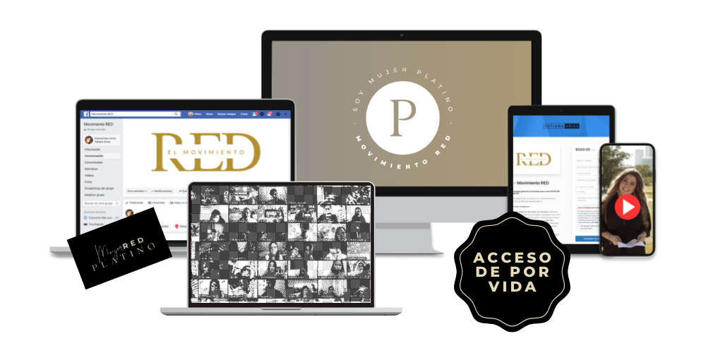 - MUJER RED PLATINO: Acceso al contenido del Movimiento RED de por vida + Todas las actualizaciones que este tenga + Bonos especiales de los lanzamientos del RetoRED. (Valor $1,997 USD)
