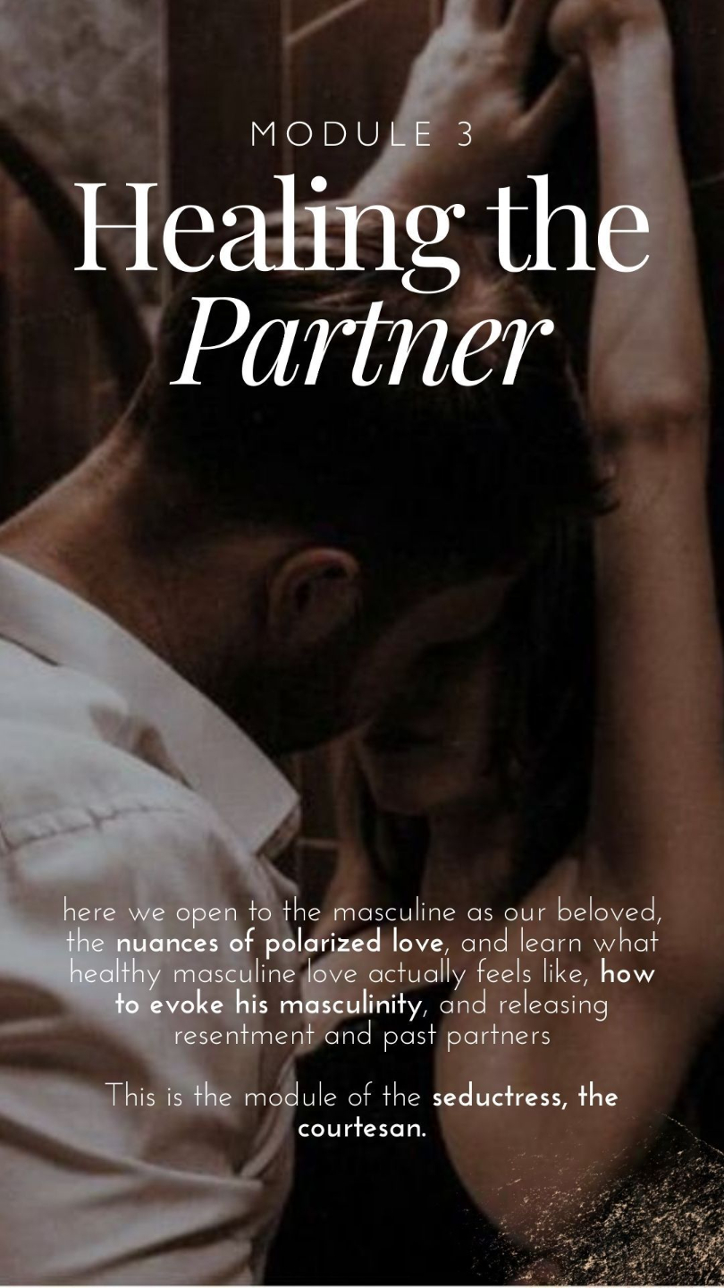 But to guide you into the deep, ancestral, erotic healing that changes everything. So you can be truly open to the masculine without any performance, or lingering resentment. So you can come home to the wildness of your own heart, whatever shape she takes